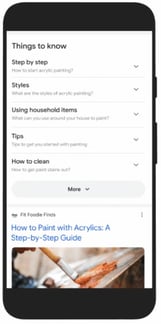 この枠には、MUMにより選定された検索キーワードについて知っておくべきトピックが複数表示されます。「Acrylic painting(アクリル画)」の検索結果の例では、下記のような関連トピックが表示されます。